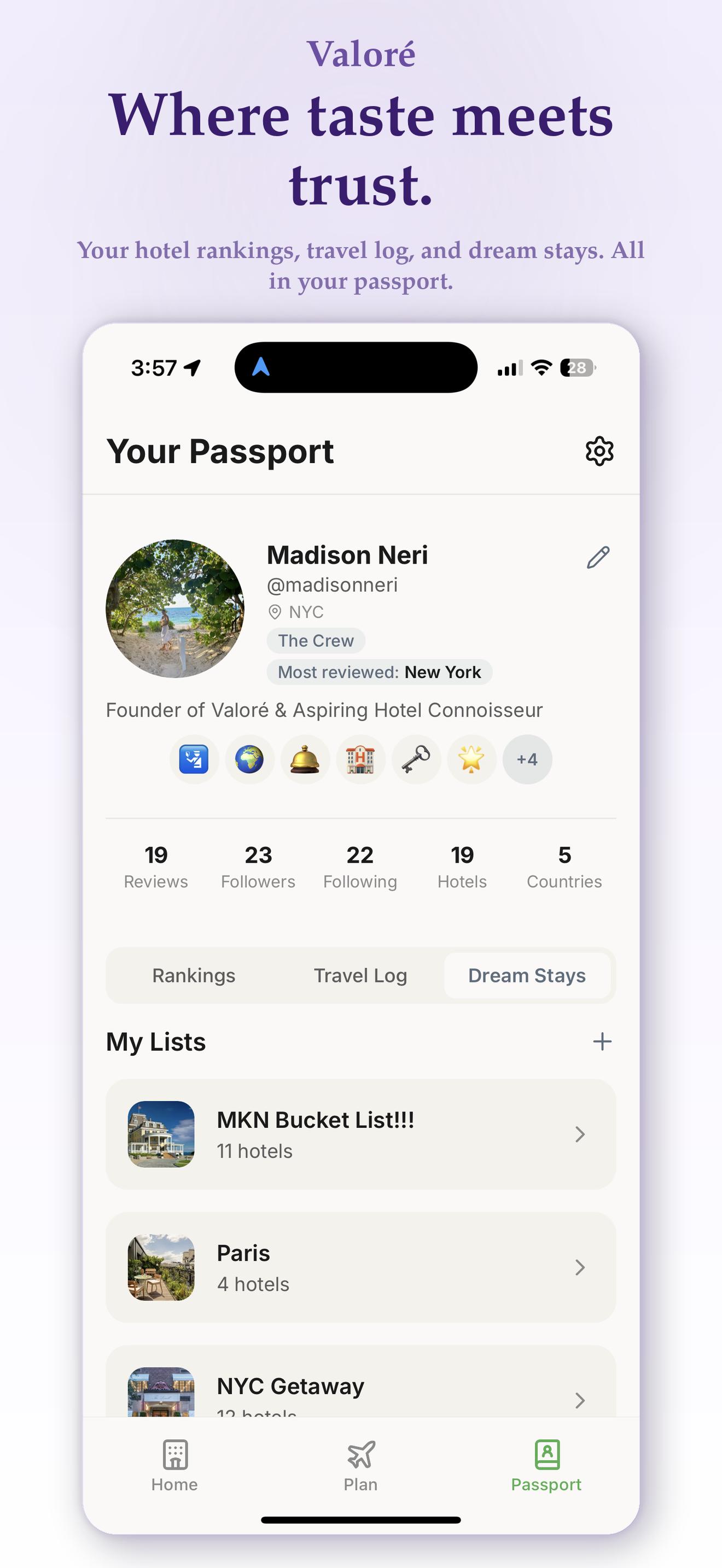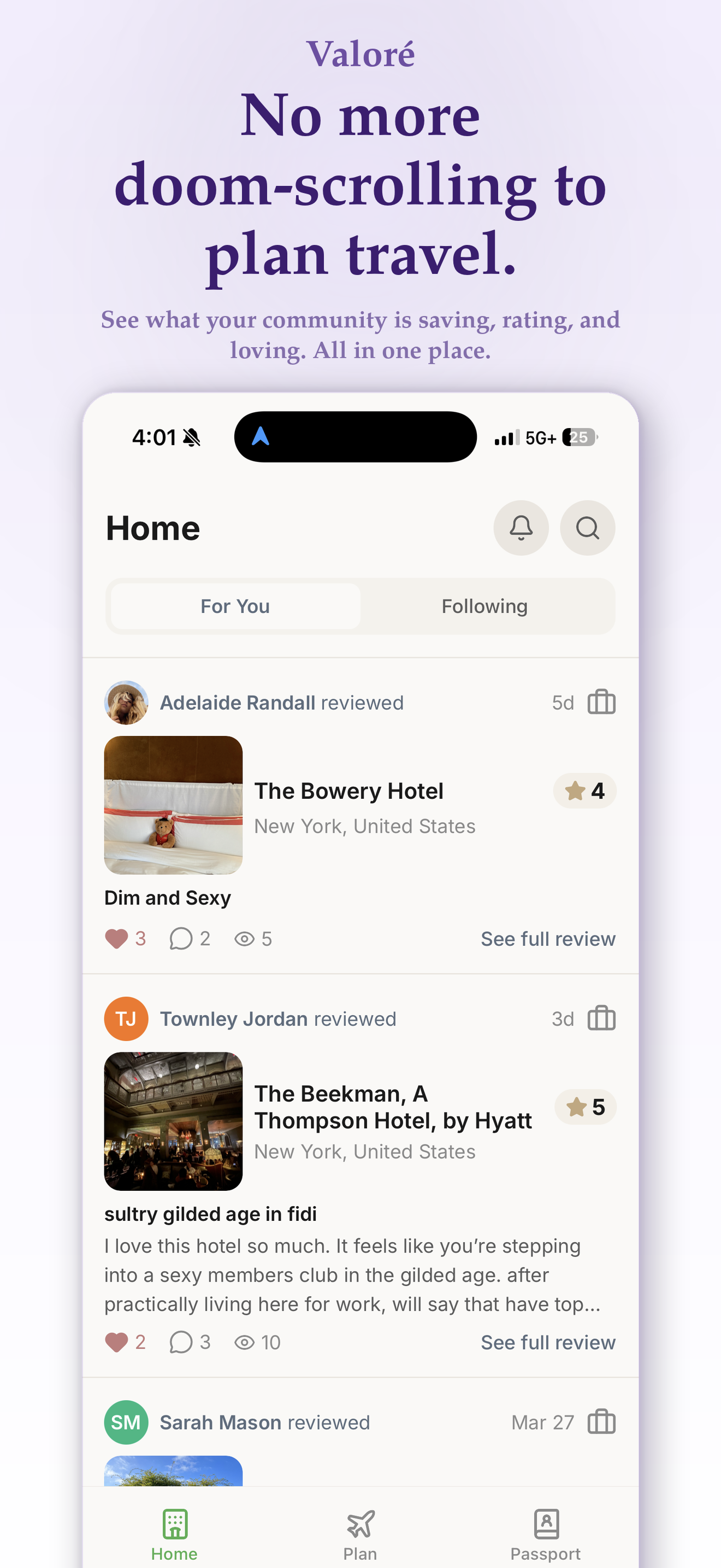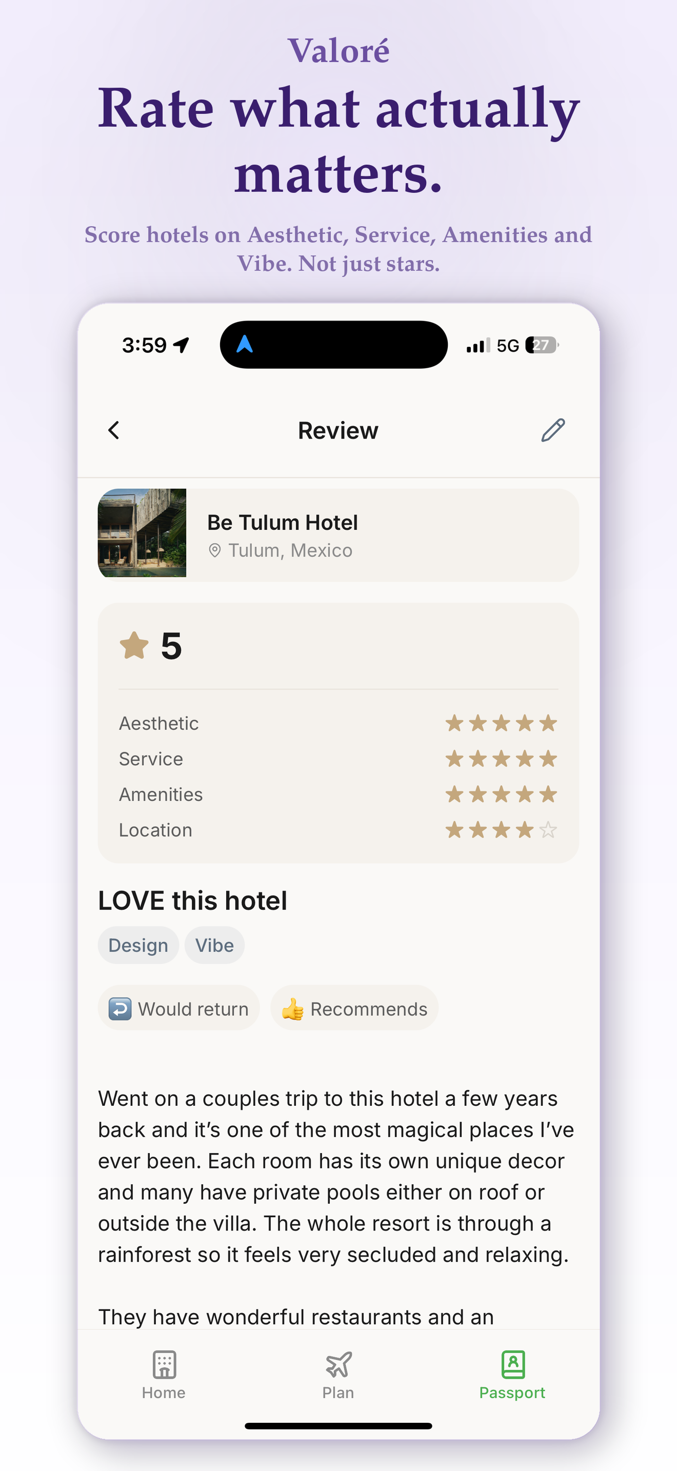 Valoré combines hotel reviews, social discovery, and personal organization into one beautifully simple app.